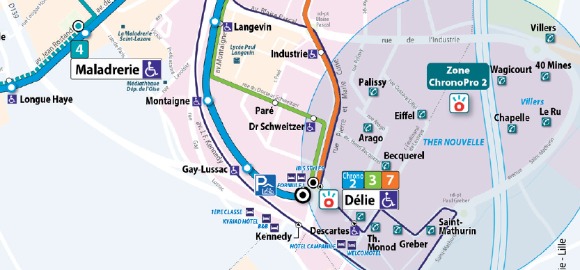 La navette CHRONOPRO 1, relie l’arrêt « Argentine », aux zones de Pinçonlieu et du Haut Villé de Beauvais.